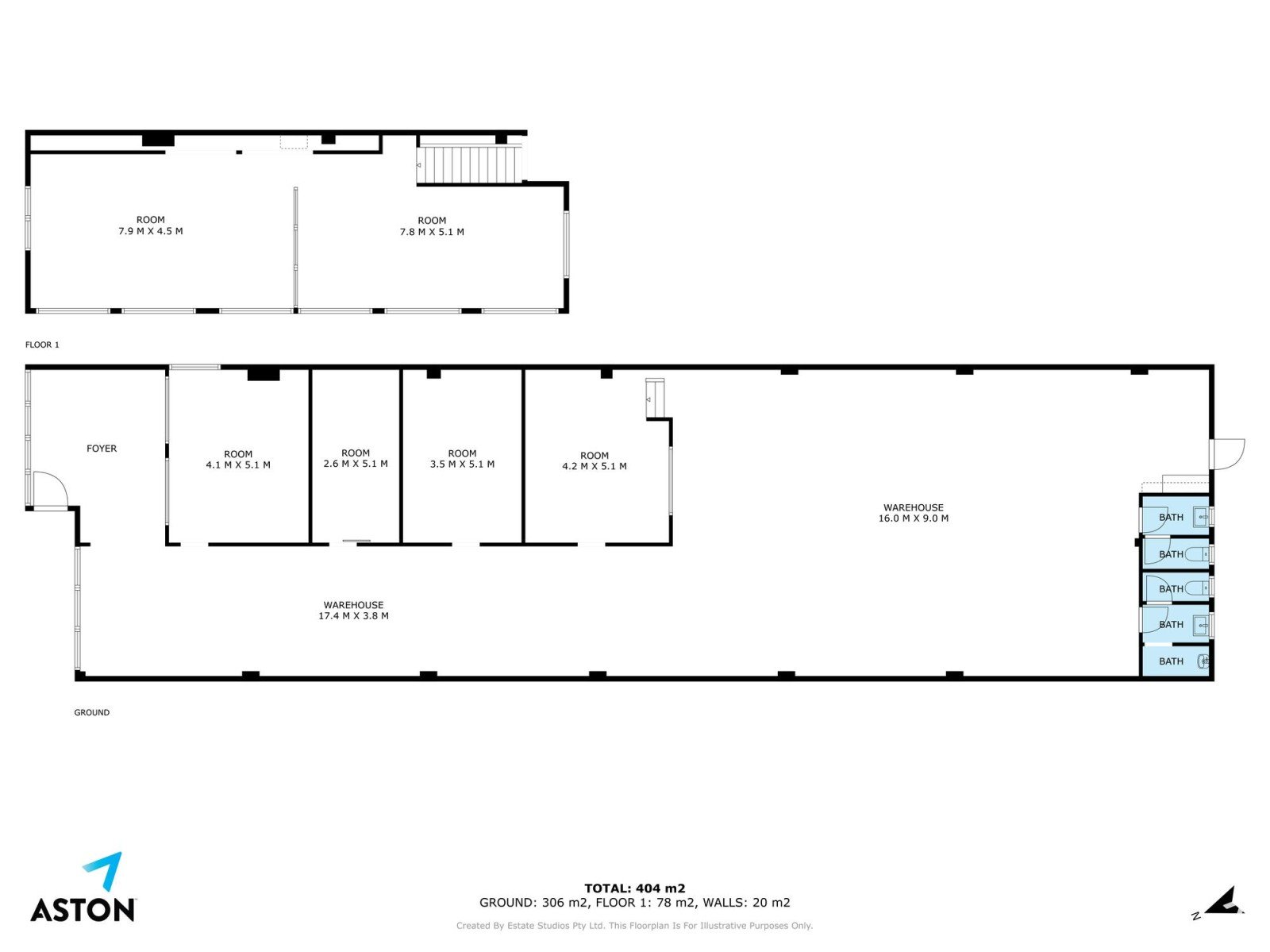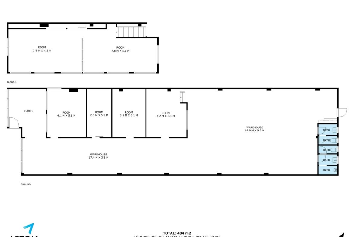 - Floor area 306m²* + 78m²* mezzanine area